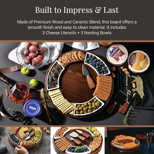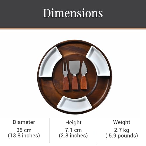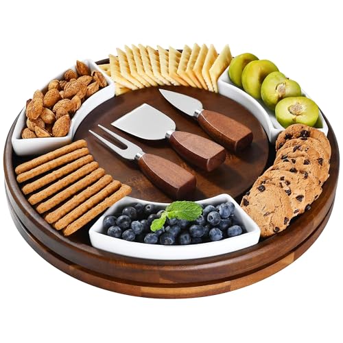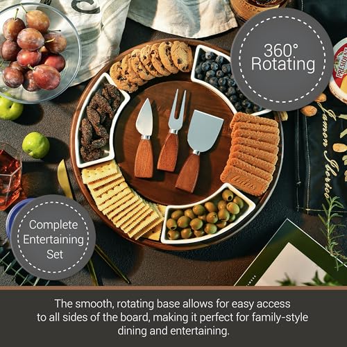 Shanik - لوح تقديم وجبات ليزي سوزان، طبق تقديم دوار من خشب الاكاسيا للجبن والشاركوتيري والمقبلات، صينية تقديم للوجبات الخفيفة والترفيه والحفلات والتجمعات العائلية من شانيك