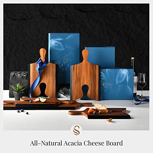 - خشب أكاسيا طبيعي بالكامل - مجموعة ألواح الجبن الطويلة الفاخرة الخاصة بنا مصنوعة بالكامل من خشب الأكاسيا عالي الجودة الذي يتميز بلون الخشب الحبيبي الفريد الذي يعزز مظهر وملمس غرفة الطعام أو مساحة المطبخ أو طاولة البوفيه..