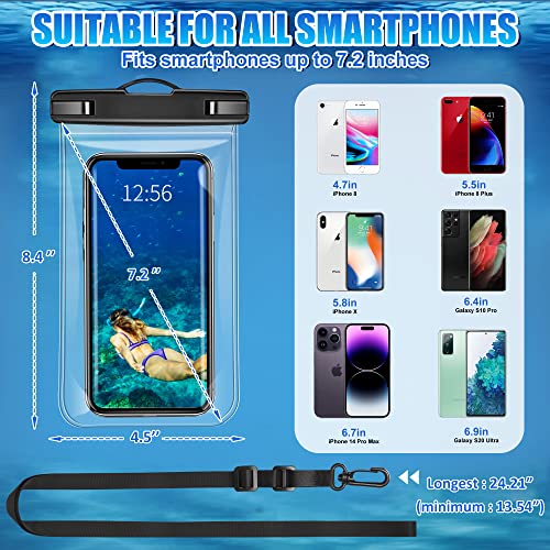 - كيس موبايل مقاوم للماء بملاءمة عالمية - يناسب جراب الموبايل المقاوم للماء الهواتف الذكية التي يصل حجمها إلى 7.2 بوصة، بما في ذلك آيفون 14 برو ماكس، 14 برو، 14، 14 بلس، 13 برو، 13 ميني، 12، 11، اكس، 7 بلس، 8 بلس، سامسونج جالاكسي S21، S20 وما إلى ذلك. *ملاحظة: إذا كانت شاشة موبايلك أكبر حجمًا، يُنصح بإزالة جراب حماية الموبايل قبل وضعه بالداخل.