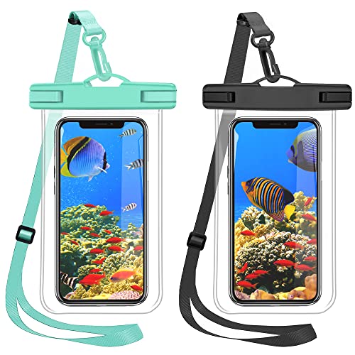 SHANSHUI - جراب موبايل مقاوم للماء عالمي، كيس للحفاظ على جفاف الموبايل للسفر والعطلات والغطس متوافق مع ايفون 14 برو ماكس وجميع الموبايلات تقريبًا من شانشوي، لون أسود وأخضر، قطعتان، بي في سي