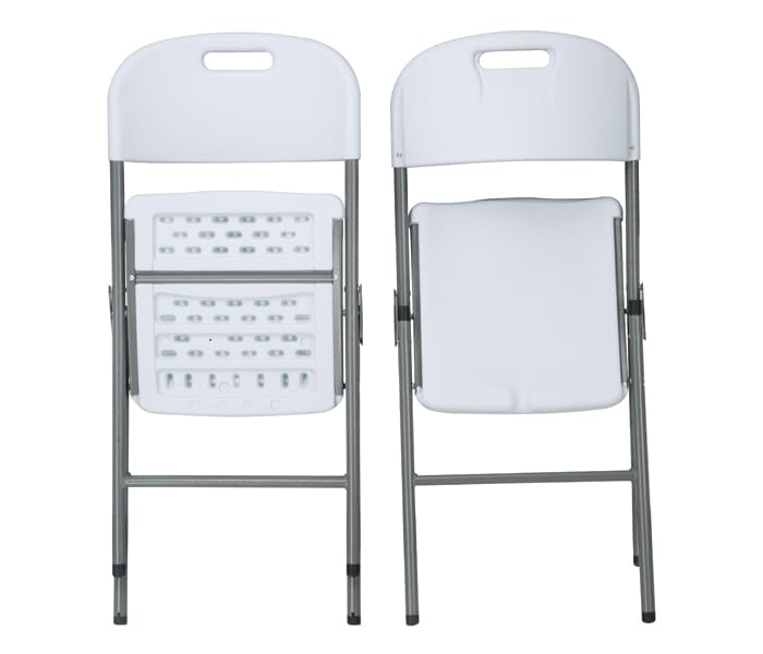 Shaoxing - كرسي من شاوشينغ للاستخدام الداخلي والخارجي والحفلات والتخييم وتناول الطعام، قابل للطي والتكديس، مصنوع من البلاستيك، باللون الأبيض