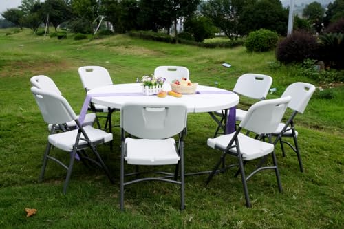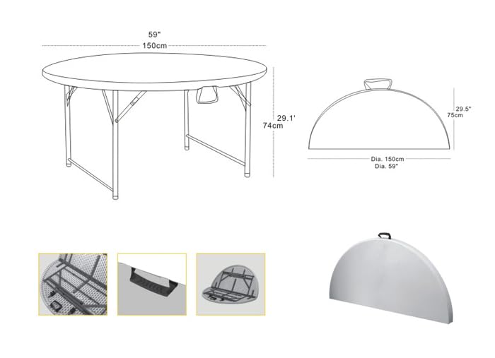 Shaoxing - طاولة دائرية قابلة للطي جياني من شاوكسينغ، قطر 1.5 م × ارتفاع 74 سم، لون أبيض