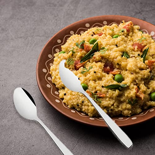 - هيكل من الستانلس ستيل عالي الجودة يوفر جاذبية دائمة ومتانة طويلة الأمد لتحمل الاستخدام اليومي. علاوة على ذلك، فإن مجموعة ملاعق الشاي مصقولة بلمسة نهائية عاكسة، ومقاومة للصدأ ويمكن استخدامها في غسالة الأطباق.