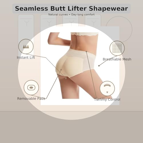 Generic - ملابس داخلية نسائية بدون خياطة عالية الخصر لشد البطن رفع المؤخرة، شورت مبطن لتعزيز مظهر الورك بمقاس كبير 120-140 كجم، ملابس داخلية شبكية مزودة بمسامات للتهوية