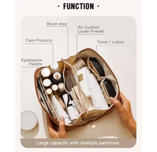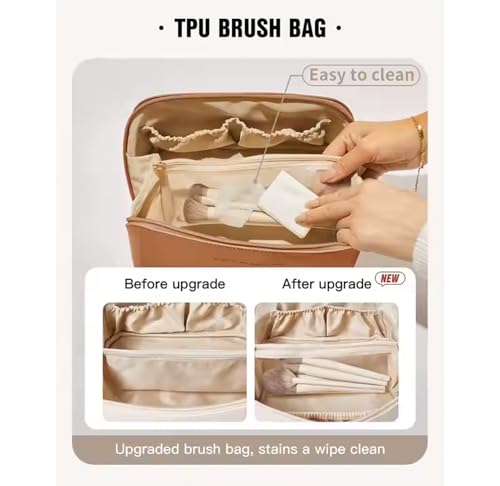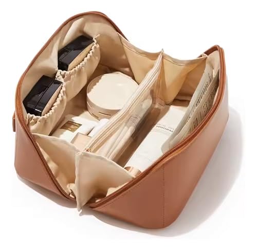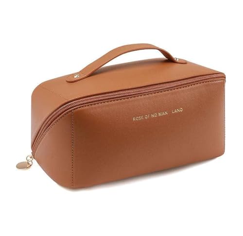 SHAR - شار شنطة مكياج نسائية من جلد البولي يوريثين بتصميم كلاسيكي جديد تمامًا وراقي ومقاوم للماء، يمكن استخدامها كمنظم مستحضرات تجميل وحقيبة تجميل، لون بني