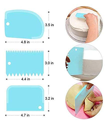 SHARABANI - اداة تقطيع وامشاط كيك بلاستيكية اخرى بنمط مموج (مجموعة من 3 قطع) اداة كشط جانبية، اداة تقطيع، ادوات اكثر سلاسة