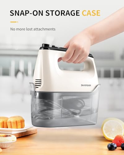 SHARDOR - مضرب يدوي كهربائي، خلاط محمول بسرعات 2×6، خلاط كهربائي للعجين والبيض والكيك، 5 ملحقات من الفولاذ المقاوم للصدأ، شنطة تخزين سهلة التركيب من شاردور