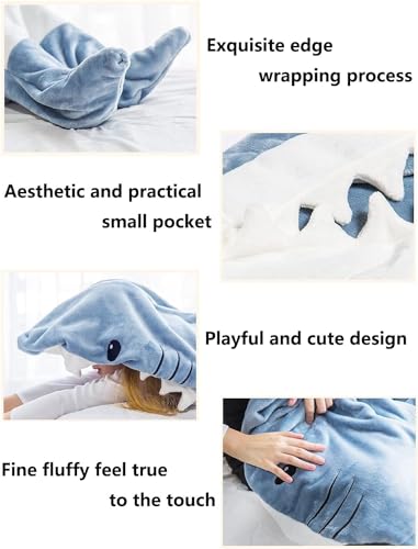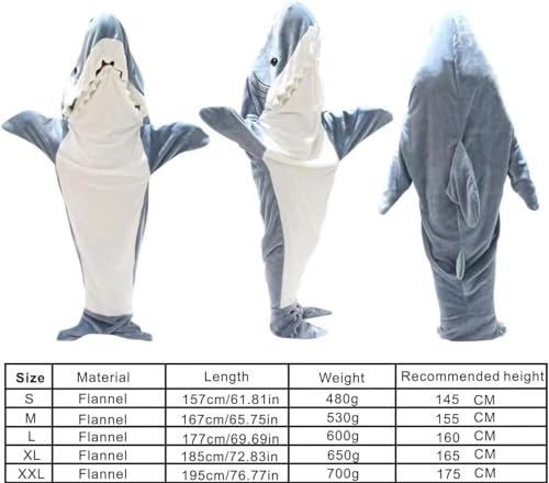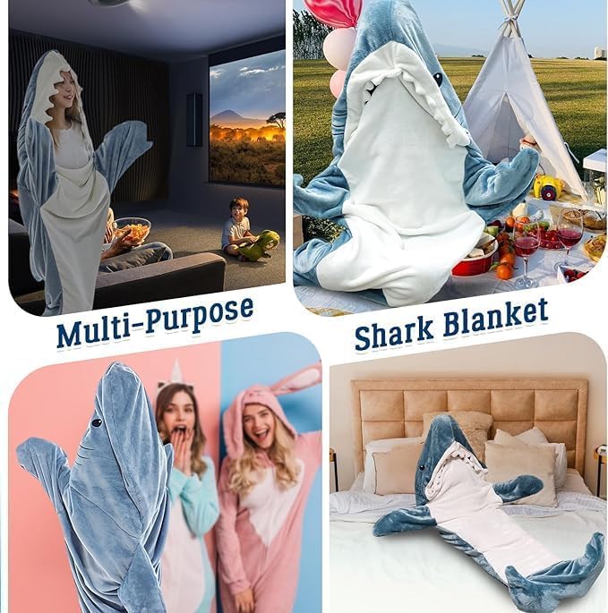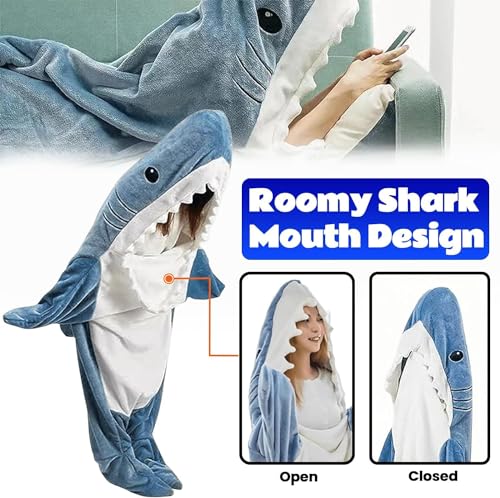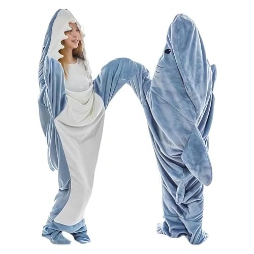 CCOVERY - بطانية بتصميم سمكة قرش بغطاء، بدلة قطعة واحدة من الفلانيل فائق النعومة، كيس نوم قابل للارتداء للبالغين والأطفال