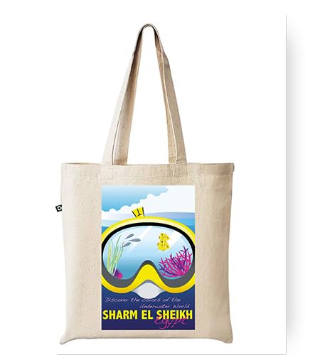Generic - شنطة توت قماشية للغوص من شرم الشيخ مصنوعة من القطن الطبيعي بتصميم مطبوع على الشاطئ
