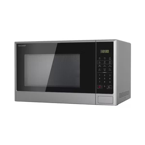 Sharp - ميكروويف سولو 28 لتر 1100 وات مع 9 قوائم طهي و11 مستوى طاقة مع تحكم رقمي باللمس ووظيفة إذابة الثلج من شارب، لون فضي، موديل R-280CR(S)