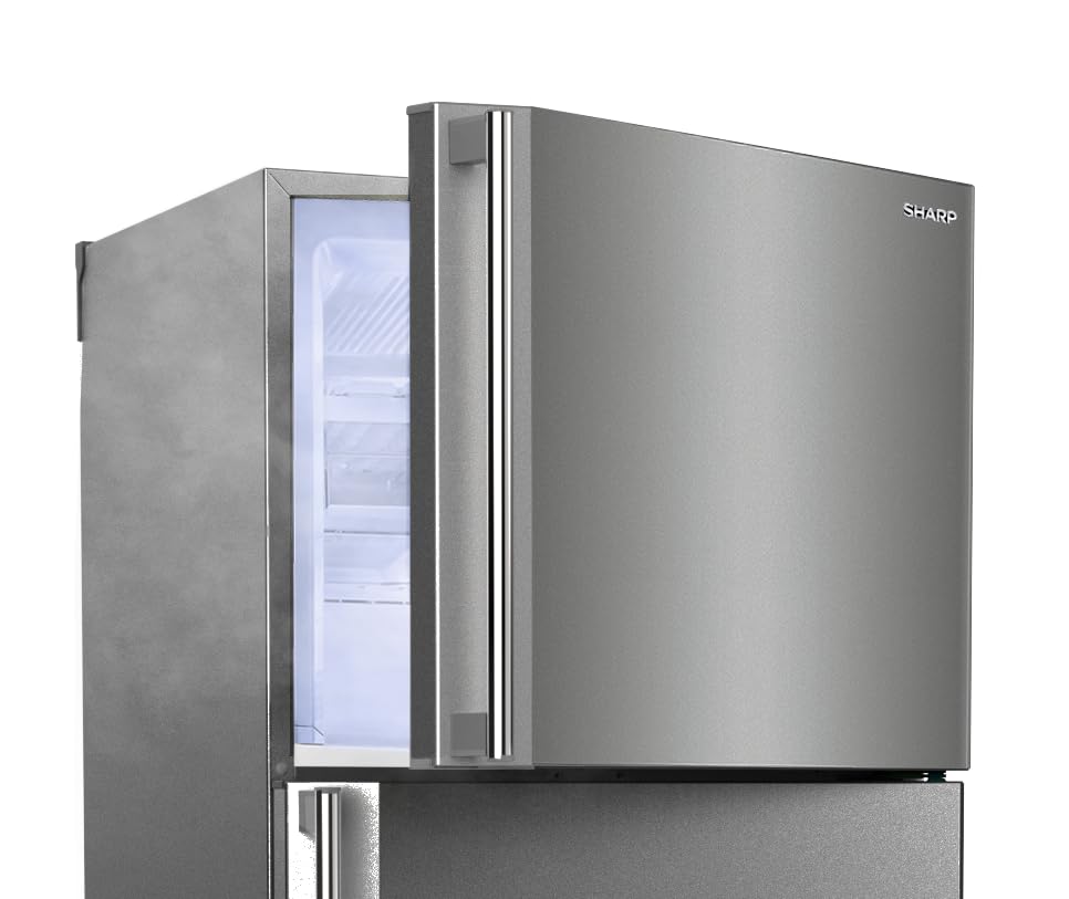 Sharp - ثلاجة بخاصية اذابة الثلج نو فروست مع بابين ستانلس وفليتر بتقنية نانو لازالة الروائح الكريهة من شارب 340 ليتر SJ 48C ST ، فضي , عدد 1