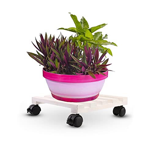 Sharpex - حامل خشبي بعجلات وقاعدة دوارة متينة للنباتات والأصص مع عجلات قفل، مناسب للاستخدام الداخلي والخارجي وفي الفناء من شاربكس، لون أبيض، قطعة واحدة