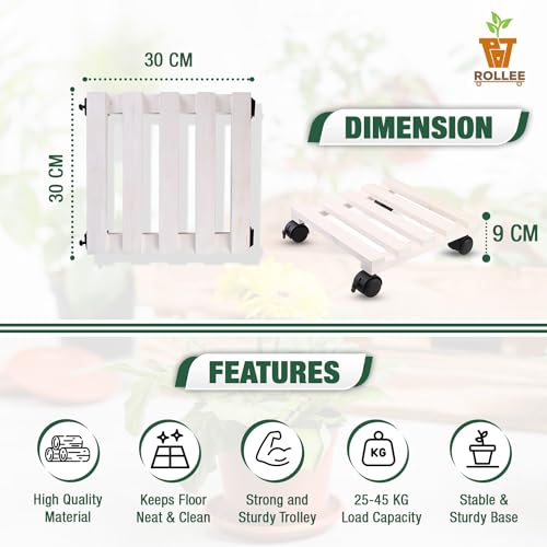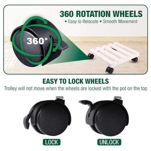 - ثابت وقوي: صُنع حامل النباتات المتحرك من خشب عالي الجودة يمكنه تحمل أواني نباتات أثقل. 4 عجلات شديدة التحمل ذات عمر طويل تدور 360 درجة. صُممت حوامل النباتات الداخلية هذه بـ 4 نقاط دعم تجعل أواني الزهور تقف بثبات.