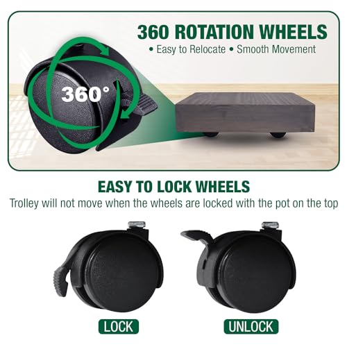 - - يمكن استخدام حامل النباتات المزود بعجلات هذا على نطاق واسع في الأماكن الداخلية والخارجية لنقل أصيص الحديقة أو النباتات الثقيلة أو الأشجار الكبيرة أو المزهريات الكبيرة أو براميل المشروبات أو علب القمامة الثقيلة ويمكنه حماية أرضيتك من التلف.