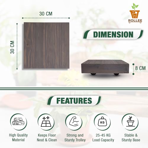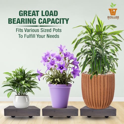 Sharpex - حامل نباتات خشب يعمل كقاعدة أكواب بعجلات دوارة أو عربة أصيص زهور متينة وعربة نباتات من شاربكس - لون رمادي، TRL-GY-013