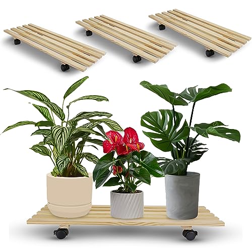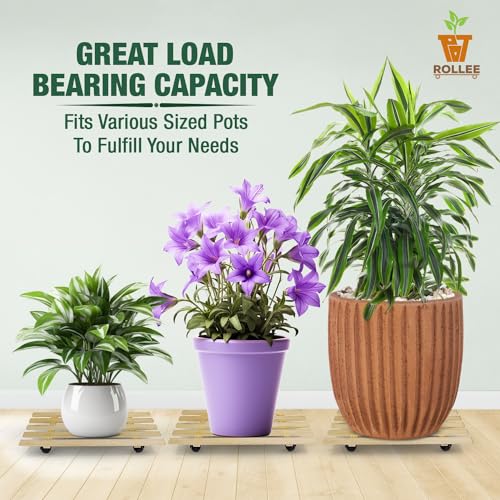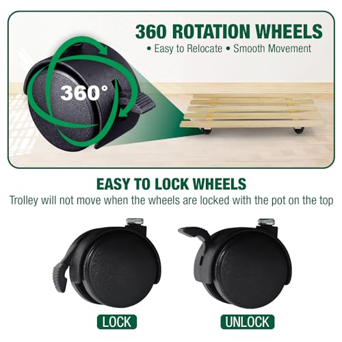 - ثابت وقوي: صُنع حامل النباتات المتحرك من خشب عالي الجودة يمكنه تحمل أواني نباتات أثقل. 4 عجلات شديدة التحمل ذات عمر طويل تدور 360 درجة. صُممت حوامل النباتات الداخلية هذه بـ 4 نقاط دعم تجعل أواني الزهور تقف بثبات.