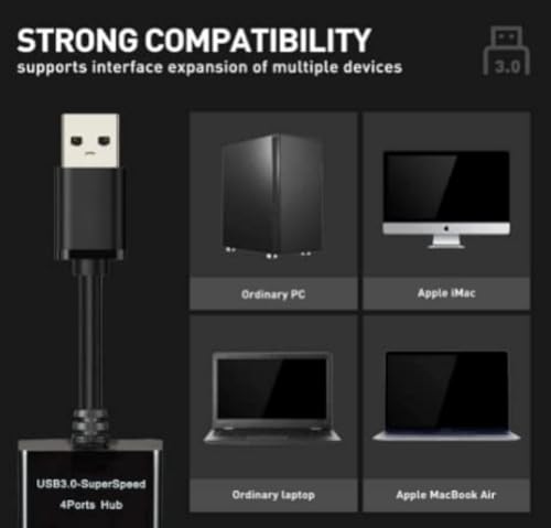 - توافق واسع مع موزع USB ذو 4 منافذ، متوافق مع أجهزة متعددة مثل الكمبيوتر وماك بوك برو وماك بوك اير واي باد واللاب توب وذاكرات فلاش USB والقرص الصلب وما إلى ذلك. سيحل موزع USB 4 منافذ العديد من مشكلات التوسيع الخاصة بك للأجهزة الإلكترونية ومنافذ USB؛