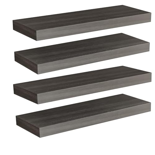 SHATGYI - ارفف عائمة للجدار مقاس 15.8 انش من شاتجي، مجموعة من 4 ارفف مثبتة على الحائط للحمام وغرفة المعيشة وغرفة النوم والمطبخ - رف تخزين متين لديكور الغرفة، 15.8 انش طول × 5.6 انش عرض × 1.2 انش ارتفاع، رمادي