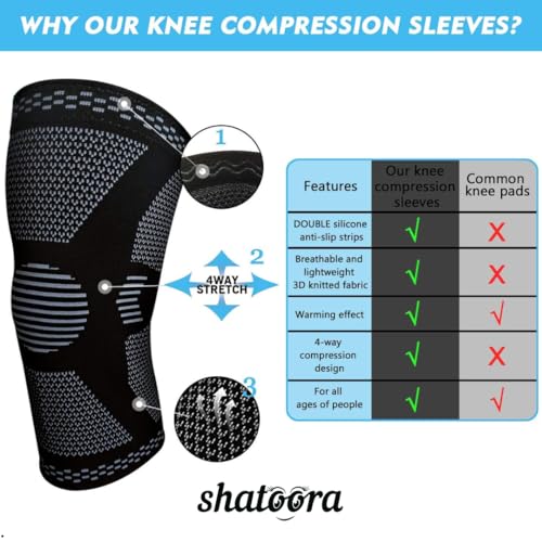 Shatoora - دعامة ضاغطة للركبة للرجال والنساء لتخفيف آلام الرباط الصليبي الأمامي والتهاب المفاصل وإصابات الغضروف المفصلي من نايلون مزود بمسامات للتهوية من شاتورا، أسود، لارج