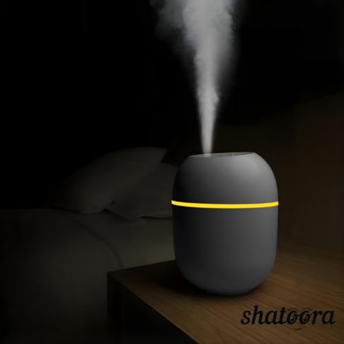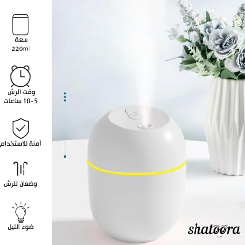 Shatoora - جهاز ترطيب وموزع روائح عطرية صغير الحجم يعمل بمنفذ USB مع اضاءة ليلية وتشغيل هادئ وايقاف تلقائي، سعة 220 مل، لون ابيض من شاتورا