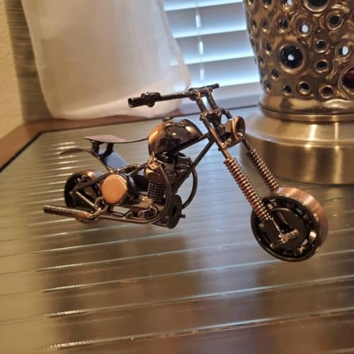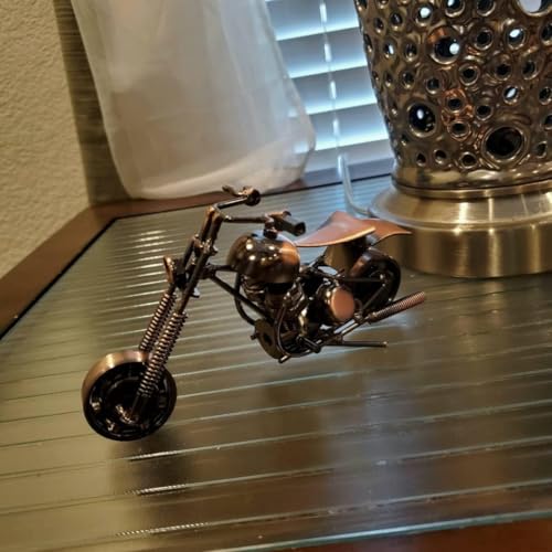 Shatoora - نموذج دراجة نارية معدني عتيق مصنوع يدويًا من شاتورا، منحوتة قابلة للتجميع، لمسة نهائية نحاسية، 6.5 انش