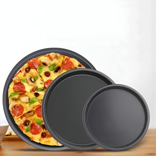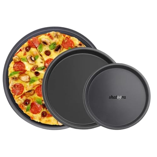 Shatoora - صينية لخبز البيتزا مقاومة للالتصاق من شطورة مجموعة 3 مقاسات 22 24 26 سم صلب عالي الكربون أسود شاتورا