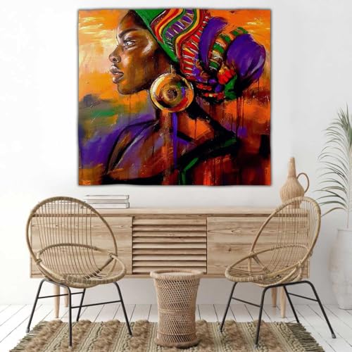 Shatta Fabrics and Curtains - بساط حائط مزين برسومات امرأة إفريقية من شطا للأقمشة والستائر، مقاس 1.30 م × 1.30 م