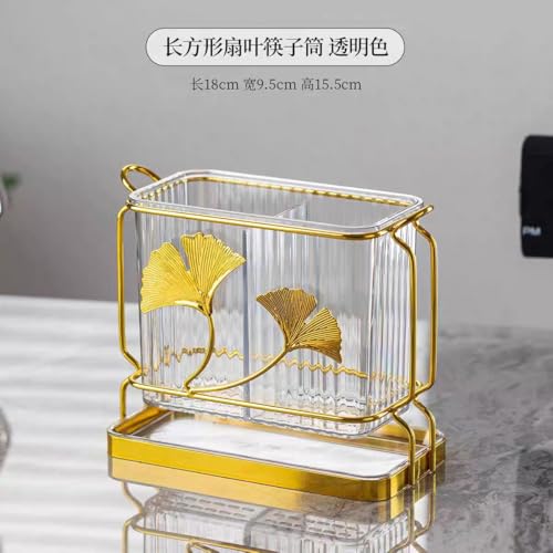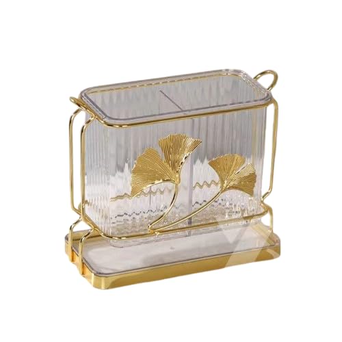 Generic - منظم أدوات مائدة أكريليك مضاد للكسر مع حامل معدني ذهبي وقاعدة لتصريف المياه ar