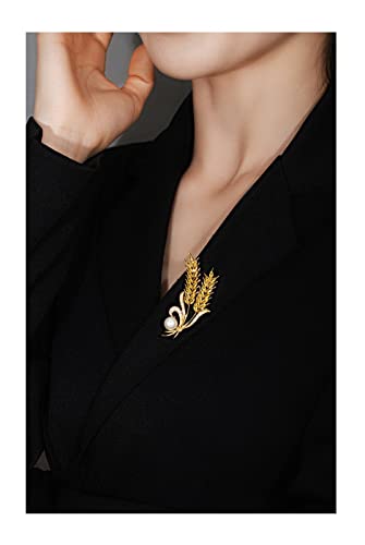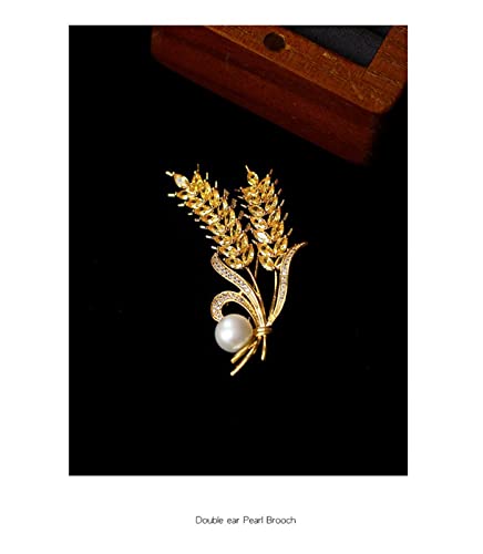 WOCOYO - دبوس بروش بتصميم حفظة قمح مزدوجة كلاسيكي للنساء، دبابيس زينة لفستان الزفاف والبدلات، مشبك شال، بروشات مزينة بلؤلؤ عصرية، مجوهرات لتزيين الملابس