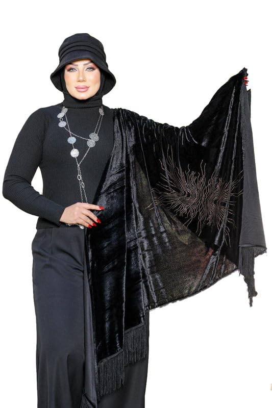 GAMAL SONS FOR ABAYA - شال قطيفه اسود استراس دهبي يشبه انفجاراً نجمياً أو شمس مشرقة . GAMAL SONS FOR ABAYA GS-1713-34229-Parent