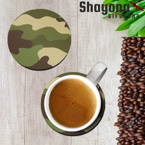 SHAYONA - 6 قطع من قواعد أكواب بنمط جيشي مع حامل من شايونا، أفضل قواعد أكواب مشروبات ماصة من السيراميك، مجموعة قواعد أكواب دائرية مزخرفة لكوب القهوة والمشروبات وقواعد أكواب المشروبات بقطر 9.5 سم
