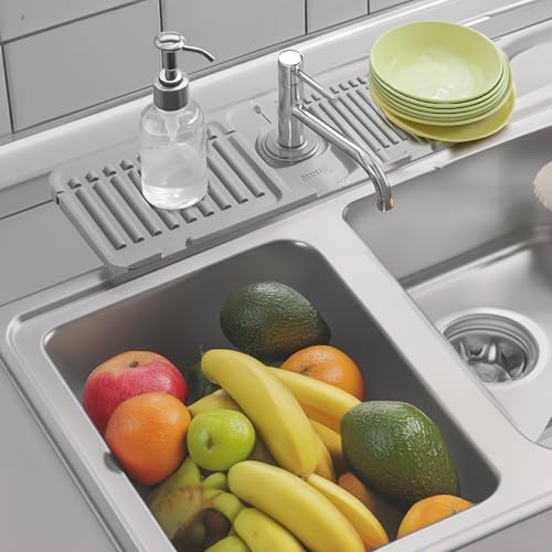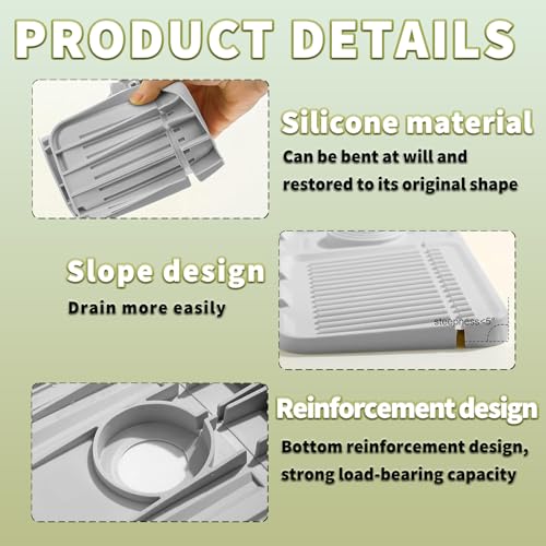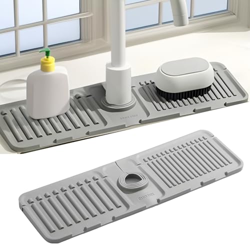 SHBLOMK - بساط تصريف من السيليكون من شبلومك، صينية حوض سريعة الجفاف، بساط تصريف واقي للحوض للمطبخ والحمام (رمادي)