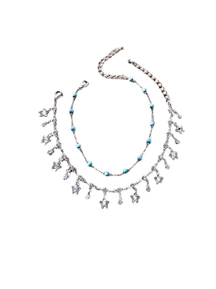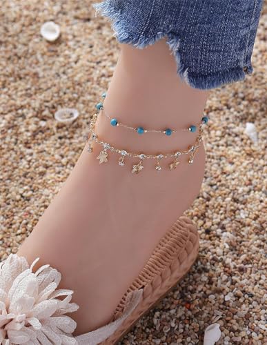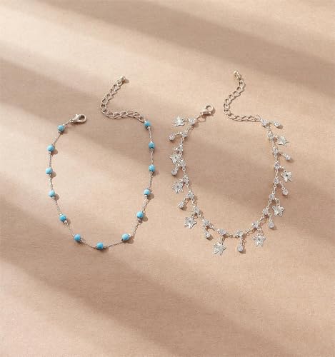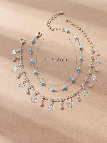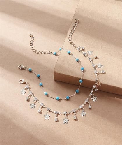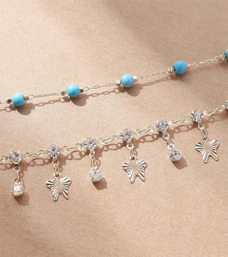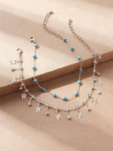 Generic - شي..ان.طقم خلخال نسائي عصري مكون من قطعتين، مرصع بأحجار الراين والخرز الزجاجي والأحجار الكريمة، مناسب للعطلات والحفلات غير الرسمية والارتداء اليومي (كمية الأحجار عشوائية).