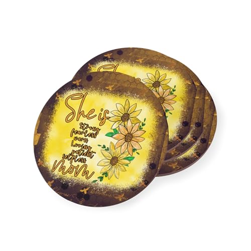 Generic - قواعد اكواب بتصميم نحل عباد الشمس من شي از مام، مجموعة من 4 قواعد اكواب مطاطية مقاومة للحرارة ومتينة - مجموعة من 4 قطع