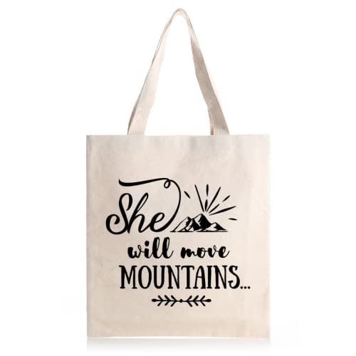 Generic - شنطة يد كبيرة توت مطبوعة بعبارة «She Will Move Mountains», اوف وايت