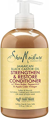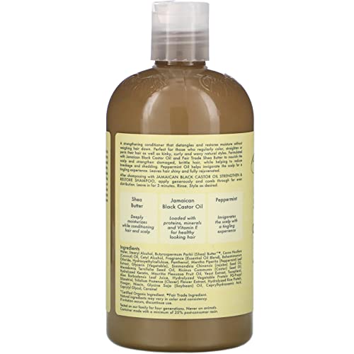 Shea Moisture - بلسم سترنثن اند ريستور من شيا مويستشر - يشطف - ينعم ويغذي الشعر بشكل مكثف، بزيت الخروع الاسود الجامايكي النقي 100% مع زبدة الشيا والنعناع وخل التفاح، 13 اونصة