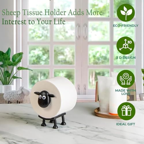 fashion mania - حامل مناديل تواليت بتصميم خروف أسود مطبوع ثلاثي الأبعاد مرح وفريد من نوعه، تصميم فريد لديكور الحمام - مجموعة من قطعة واحدة