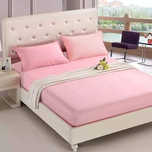 Generic - طقم ملايه استك، 3 قطع قطن لسرير سنجل ملايه 200x100 + مخده طويله 120 سم +1 خداديه 50X70 -، سادة، زهري