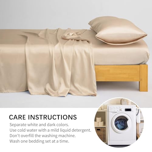 sheful - طقم ملايات سرير ساتان مقاس كينج 2.00 × 2.00 متر حريرية فاخرة بجودة الفنادق بجيب عميق 38.1 سم للمرتبة 4 قطع ذهبي فاتح سادة من شيفول