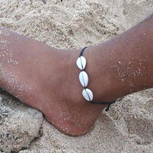 Shegirl - خلخال بطراز بوهو بنمط الصدف من شي جيرل، تصميم منسوج بسيط مصنوع يدويًا للشاطئ بطابع هاواي للاقدام الحافية للنساء والبنات, صدفة