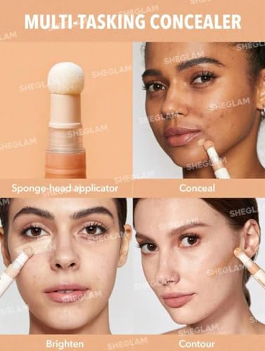 SHEGLAM - كونسيلر معزز للبشرة من شيجلام - مع أداة توزيع برأس اسفنجي - تركيبة عالية التغطية (شيل)