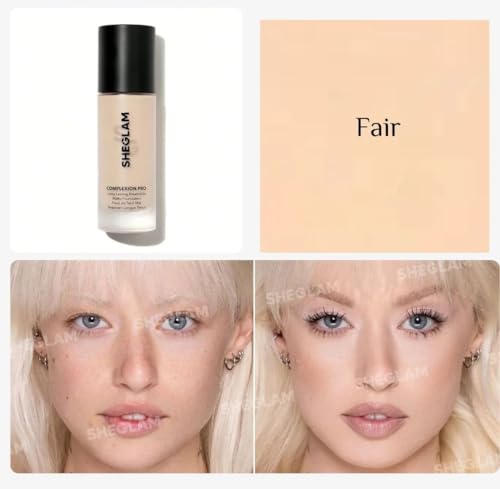 SHEGLAM - كريم أساس كومبليكشن برو من شيجلام، يدوم طويلا ومزود بمسامات للتهوية ومطفي، 30 مل، لون فير
