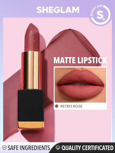 SHEGLAM - أحمر شفاه مات الور بتركيبة ناعمة عالية الصبغات تدوم طويلًا من شيجلام، متوفر بـ20 لون، روز فاتح (ريترو روز)