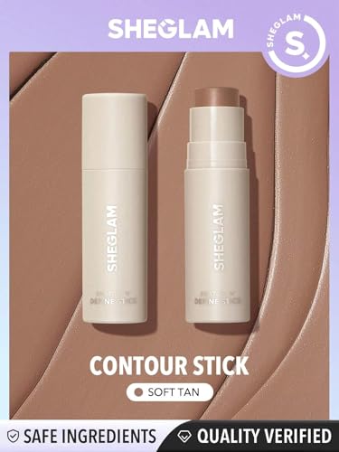 SHEGLAM - قلم تحديد الوجه الكريمي ان ديفاين ستيك من شيجلام، يدوم طويلا بتركيبة عالية الاصطباغ ومقاومة للعرق لنحت الوجه، ناعم وخفيف الوزن (بيج داكن ناعم)