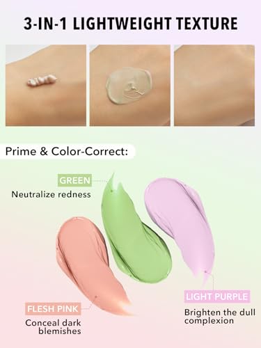 SHEGLAM - برايمر ثلاثي التهديدات لتصحيح لون البشرة 3 في 1 لتقليل المسام للوجه لتحديد الخطوط الدقيقة واللون خفيف الوزن من شيجلام