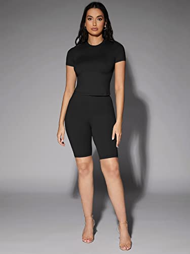 SHEIN - شي ان شورت بايكر بخصر مرتفع من بي ايه اي، M1804914، اسود، مقاس L