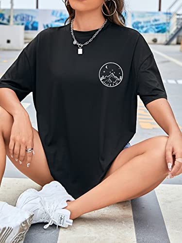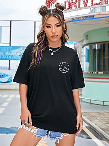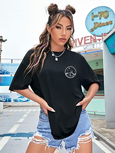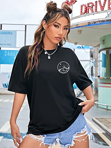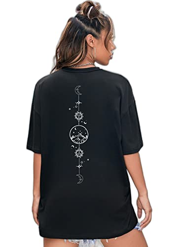 SHEIN - شي ان تي شيرت بكتف متدلي برسومات القمر والشمس من اي زد وير