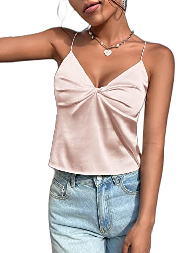 SHEIN - بلوزة ساتان اي زد وير بحمالات رفيعة وتصميم ملفوف من شي ان