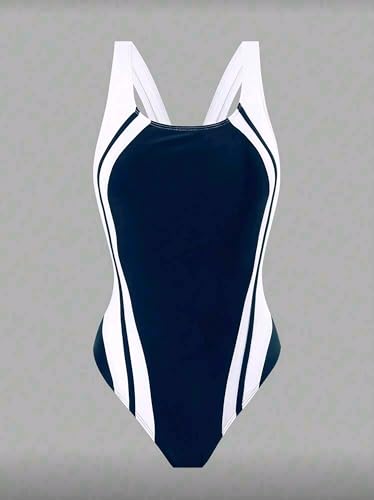 Generic - بدلة سباحة من قطعة واحدة للنساء من شي ان F-AA بتصميم مرقع بالوان متباينة باللونين الاسود والابيض وتصميم ضيق مناسب للشاطئ والعطلات الصيفية والشاطئية