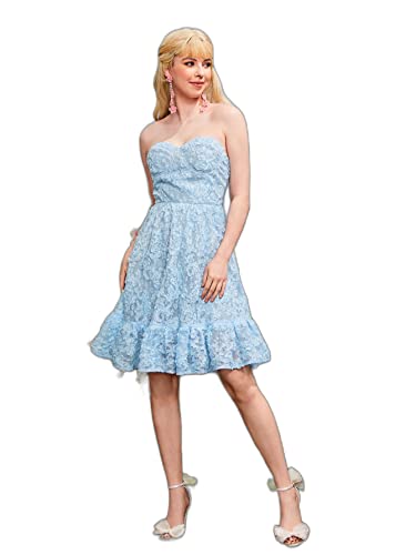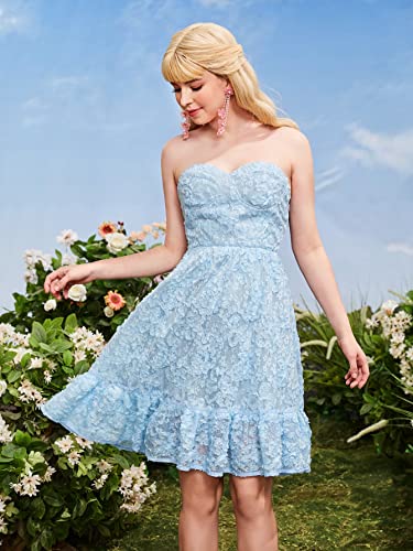 SHEIN - شي ان فستان وصيفة العروس مزين بالورود وبحواف مكشكشة بيبي بلو M للنساء